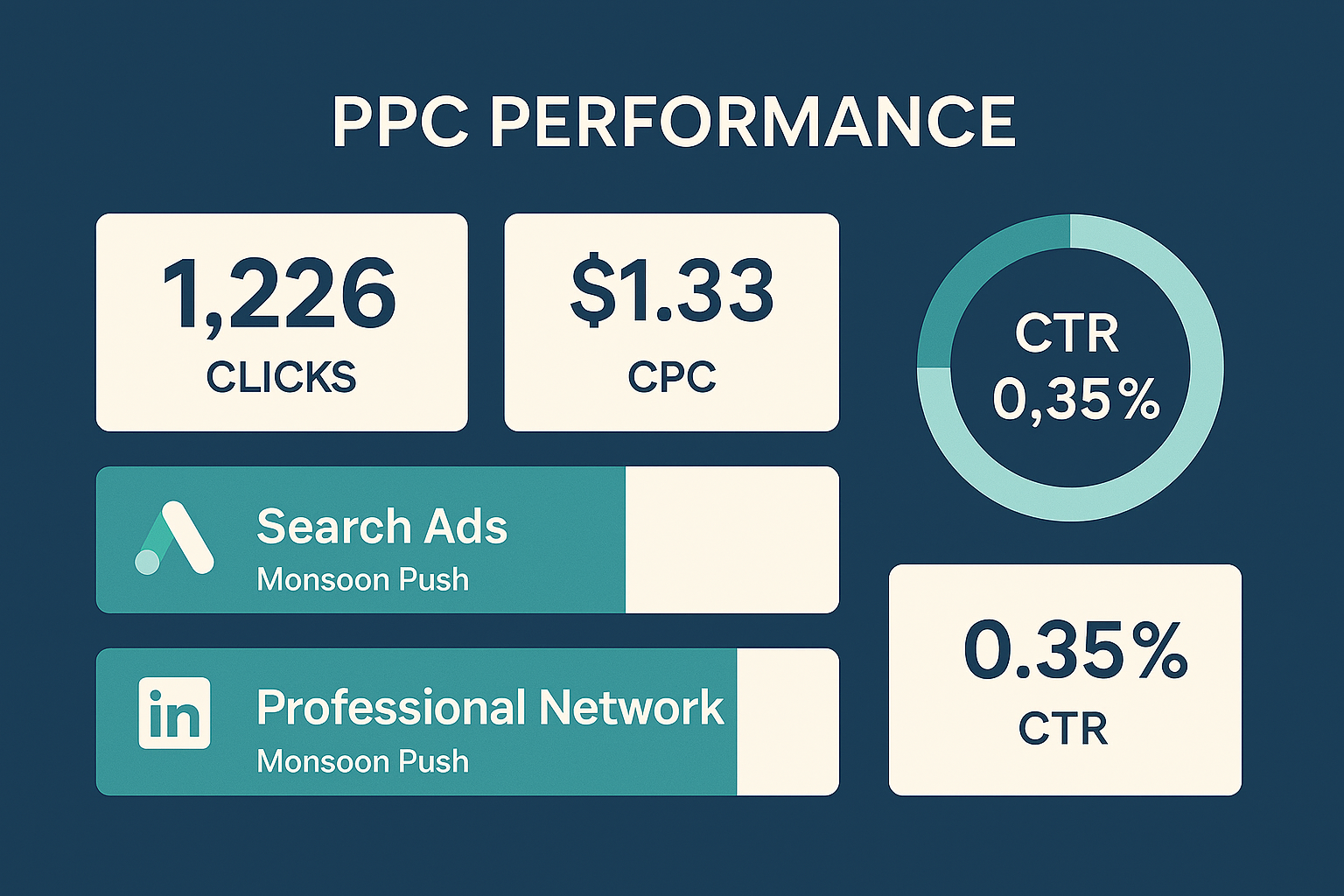 These results reflect efficient budget use with stable CPCs and controlled reach toward qualified, intent-bearing audiences.