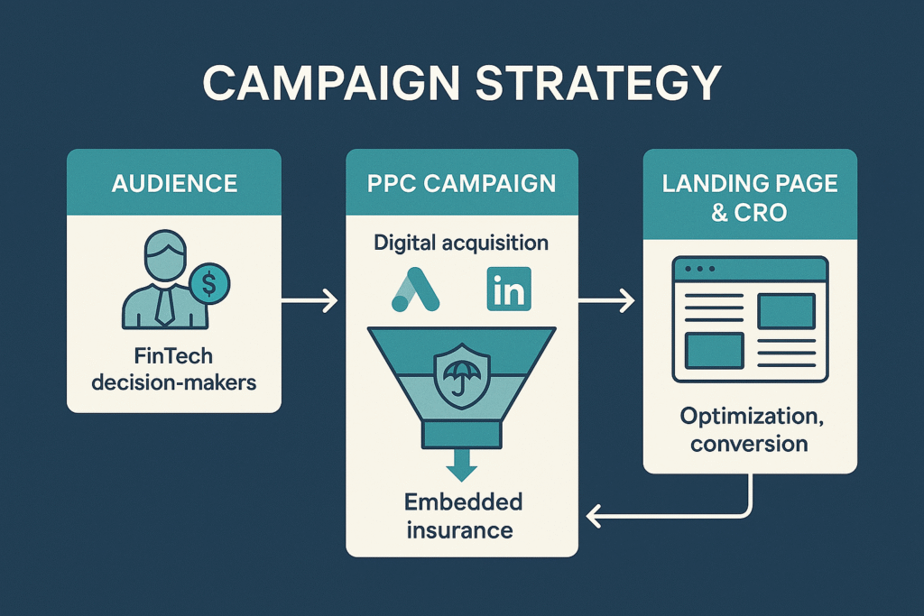 247 Fintech Marketing partnered with Riskcovry, a FinTech/Insurtech company offering insurance-related services and embedded distribution capabilities, to design and execute a full-funnel digital acquisition program. The initiative combined PPC advertising, a purpose-built landing page, and CRO to systematically improve traffic quality, onsite engagement, and conversion efficiency.